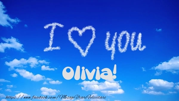 Felicitare cu I love you pe cerul albastru transmite autenticitatea și frumusețea dragostei, iar numele Olivia este elementul central al acestei experiențe romantice. Este un mod elegant de a exprima profunzimea sentimentelor tale.