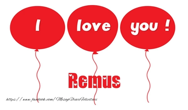 I love you Remus | Felicitare cu I love you scris în baloane | Felicitari de dragoste