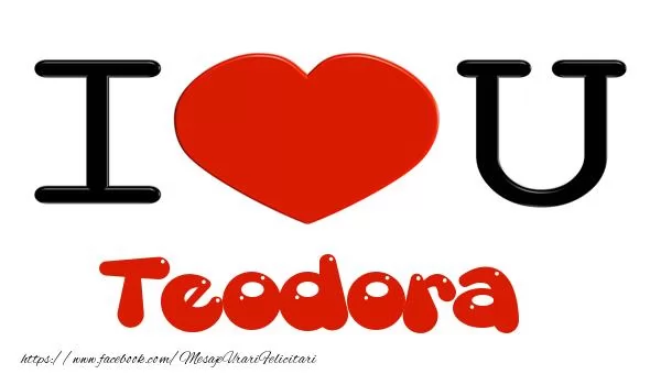 Această felicitare cu I love you cu inimioară din colecția noastră de felicitari de dragoste cu numele Teodora are o notă de originalitate și îți oferă ocazia să faci o persoană să se simtă specială datorită faptului că acolo este numele ei. Felicitarea se poate descărca gratuit sau se poate trimite prin Whatsapp, Facebook, Twitter, Pinterest. Imagine de iubire cu I love you cu inimioară cu dimensiunile 600px x 350px și cu textul I love you Teodora.