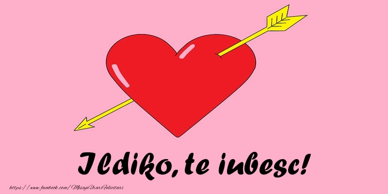 Această felicitare cu inima cu sageata din colecția noastră de felicitari de dragoste cu numele Ildiko are o notă de originalitate și îți oferă ocazia să faci o persoană să se simtă specială datorită faptului că acolo este numele ei. Felicitarea se poate descărca gratuit sau se poate trimite prin Whatsapp, Facebook, Twitter, Pinterest. Imagine de iubire cu inima cu sageata cu dimensiunile 800px x 400px și cu textul Ildiko, te iubesc!.