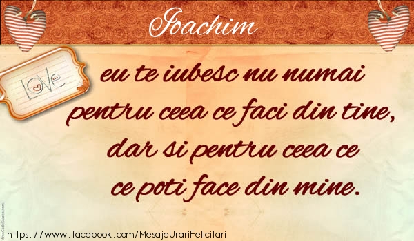 Ioachim eu te iubesc nu numai pentru ceea ce faci din tine, dar si pentru ceea ce poti face din mine. | Felicitare cu inimioare și un mesaj frumos | Felicitari de dragoste