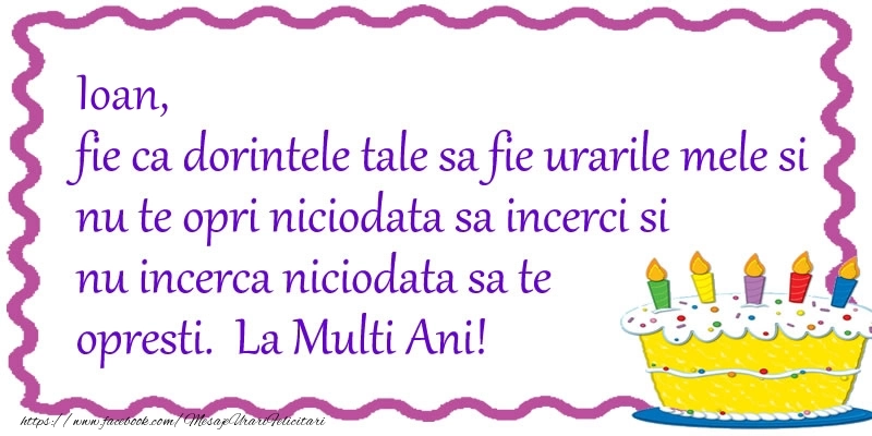 Ioan, fie ca dorintele tale sa fie urarile mele si nu te opri niciodata sa incerci si nu incerca niciodata sa te opresti. La Multi Ani!