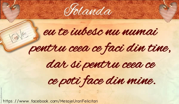 Felicitare cu inimioare și un mesaj frumos transmite autenticitatea și frumusețea dragostei, iar numele Iolanda este elementul central al acestei experiențe romantice. Este un mod elegant de a exprima profunzimea sentimentelor tale.