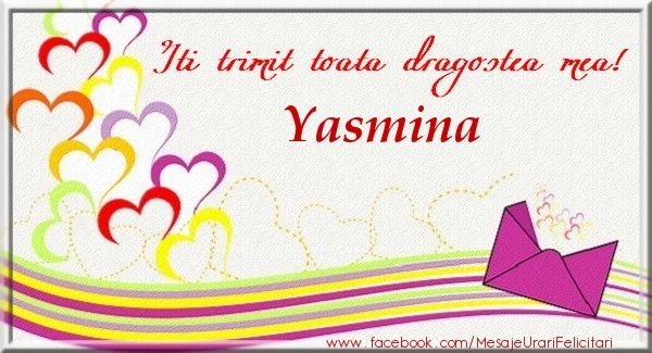 Iti trimit toata dragostea mea Yasmina | Felicitare cu scrisoare cu inimioare colorate | Felicitari de dragoste