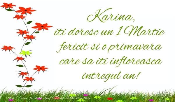 Karina iti doresc un 1 Martie fericit si o primavara care sa iti infloreasca intregul an!
