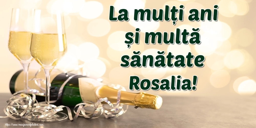 Această felicitare cu șampanie cu pahare pentru domni sau doamne din colecția noastră de felicitari de la multi ani cu numele Rosalia are o notă de originalitate și îți oferă ocazia să faci o persoană să se simtă specială datorită faptului că acolo este numele ei. Felicitarea se poate descărca gratuit sau se poate trimite prin Whatsapp, Facebook, Twitter, Pinterest. Imagine de la mulți ani cu șampanie cu pahare pentru domni sau doamne cu dimensiunile 1000px x 500px și cu textul La mulți ani și multă sănătate Rosalia!.