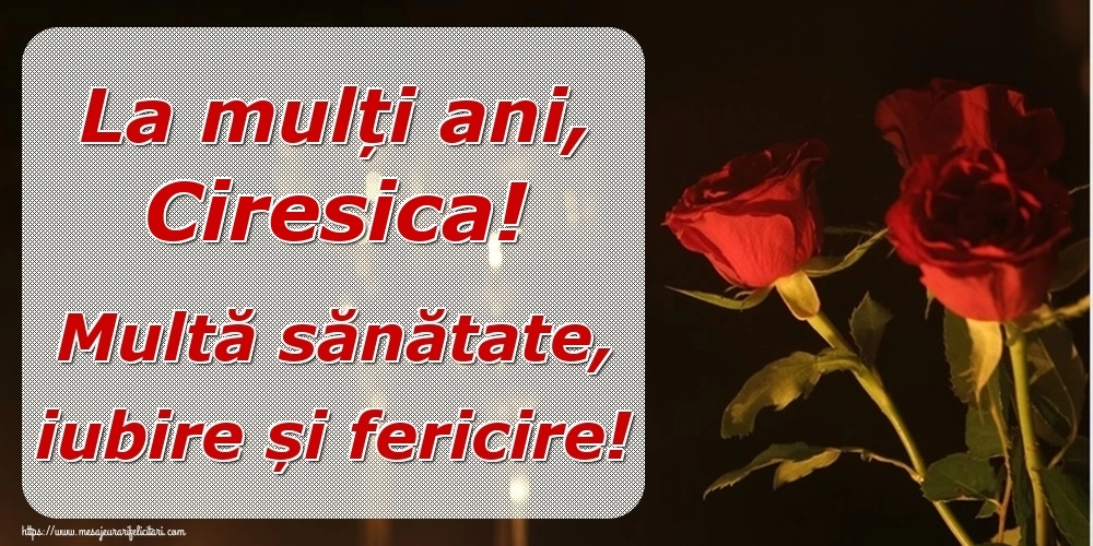 La mulți ani, Ciresica! Multă sănătate, iubire și fericire! | Felicitare cu 3 trandafiri roșii pe fundal negru | Felicitari de la multi ani