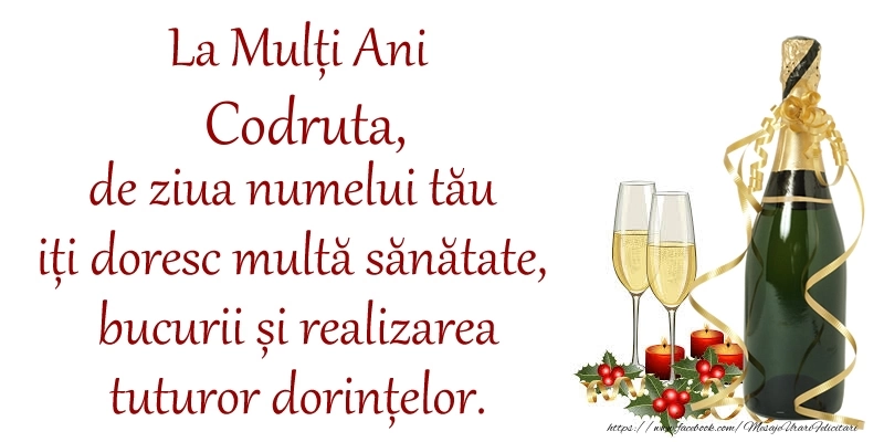 La Mulți Ani Codruta, de ziua numelui tău iți doresc multă sănătate, bucurii și realizarea tuturor dorințelor. | Felicitare cu șampanie și lumânări | Felicitari de Ziua Numelui
