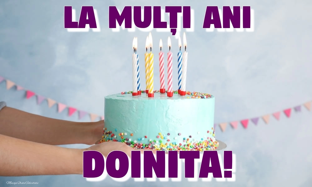 Felicitarea cu persoană cu un tort cu lumânări aprinse este un cadou mic, dar personal, creat special pentru ziua de naștere. Numele Doinita e esența acestui cadou, aducând bucurie într-un mod simplu și intim.