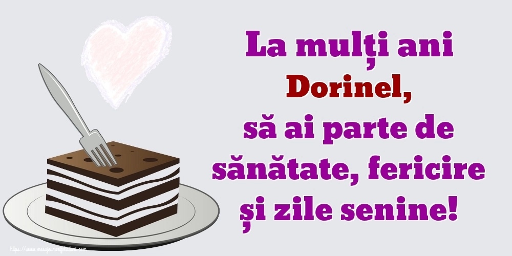 La mulți ani Dorinel, să ai parte de sănătate, fericire și zile senine! | Felicitare cu prăjitură de ciocolată și inimioară | Felicitari de zi de nastere