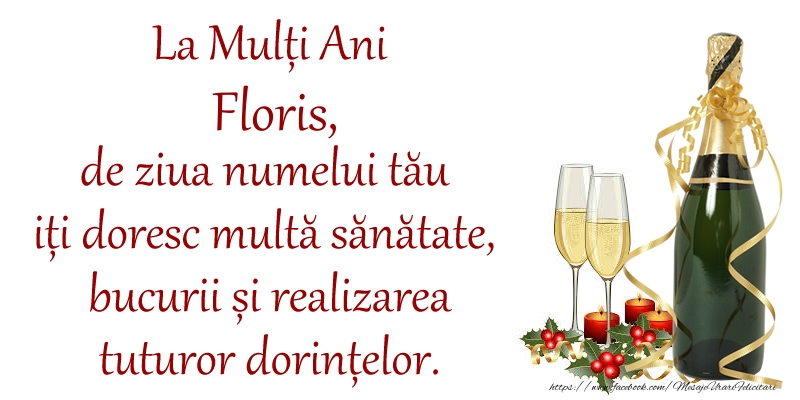 La Mulți Ani Floris, de ziua numelui tău iți doresc multă sănătate, bucurii și realizarea tuturor dorințelor. | Felicitare cu șampanie și lumânări | Felicitari de Ziua Numelui