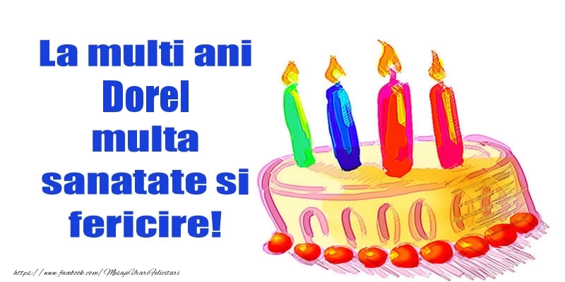 Această felicitare cu desen cu tort din colecția noastră de felicitari de zi de nastere cu numele Dorel are o notă de originalitate și îți oferă ocazia să faci o persoană să se simtă specială datorită faptului că acolo este numele ei. Felicitarea se poate descărca gratuit sau se poate trimite prin Whatsapp, Facebook, Twitter, Pinterest. Imagine de zi de nastere cu desen cu tort cu dimensiunile 800px x 400px și cu textul La mult ani Dorel multa sanatate si fericire!.