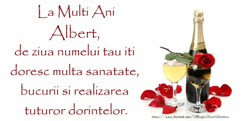 La Multi Ani Albert, de ziua numelui tau iti doresc multa sanatate, bucurii si realizarea tuturor dorintelor.