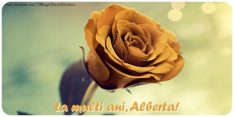 Felicitarea cu trandafirul galben este ca o explozie de bucurie și culoare, iar numele Alberta este adăugat cu gingășie pentru a personaliza această experiență de sărbătoare. Este modul tău de a spune la mulți ani într-un mod unic și special!