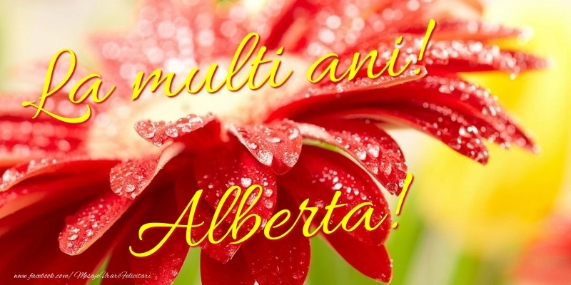 Felicitarea cu o floare roșie este ca o explozie de bucurie și culoare, iar numele Alberta este adăugat cu gingășie pentru a personaliza această experiență de sărbătoare. Este modul tău de a spune la mulți ani într-un mod unic și special!