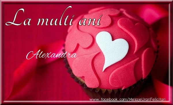 Această felicitare cu inimioare din colecția noastră de felicitari de la multi ani cu numele Alexandra are o notă de originalitate și îți oferă ocazia să faci o persoană să se simtă specială datorită faptului că acolo este numele ei. Felicitarea se poate descărca gratuit sau se poate trimite prin Whatsapp, Facebook, Twitter, Pinterest. Imagine de la mulți ani cu inimioare cu dimensiunile 600px x 365px și cu textul La multi ani Alexandra cu drag .