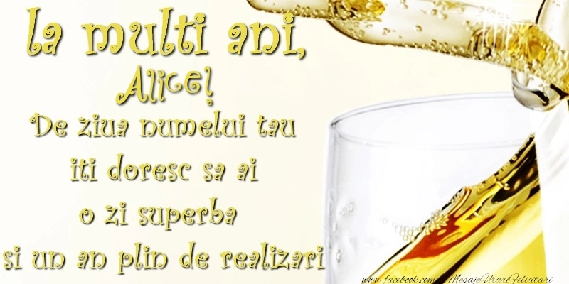 La multi ani! Alice De ziua numelui tau iti doresc sa ai o zi superba si un an plin de realizari