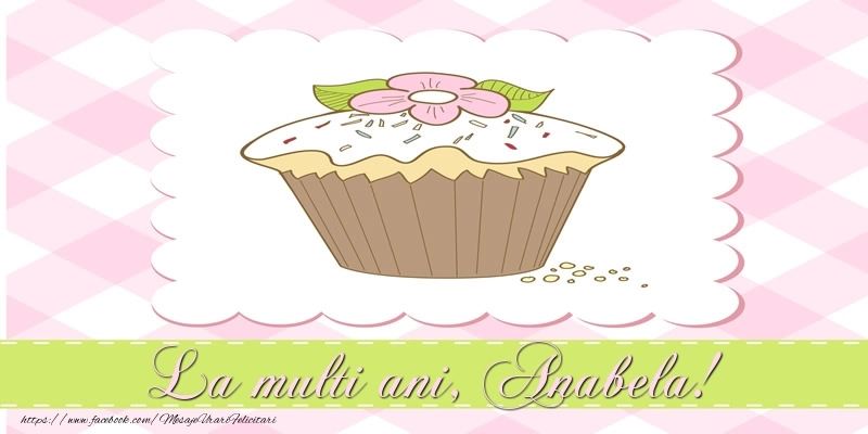 Această felicitare cu prăjiturică din colecția noastră de felicitari de la multi ani cu numele Anabela are o notă de originalitate și îți oferă ocazia să faci o persoană să se simtă specială datorită faptului că acolo este numele ei. Felicitarea se poate descărca gratuit sau se poate trimite prin Whatsapp, Facebook, Twitter, Pinterest. Imagine de la mulți ani cu prăjiturică cu dimensiunile 800px x 400px și cu textul La multi ani, Anabela!.