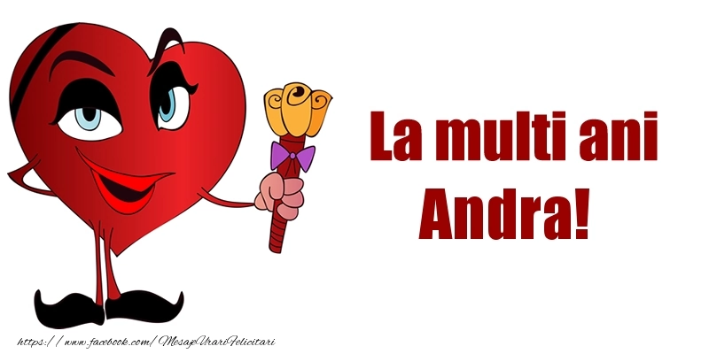 La multi ani Andra! | Felicitare cu o inimoară haioasă cu un buchet în mână | Felicitari de la multi ani