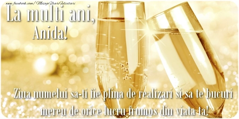 La multi ani, Anida! Ziua numelui sa-ti fie plina de realizari si sa te bucuri mereu de orice lucru frumos din viata ta!