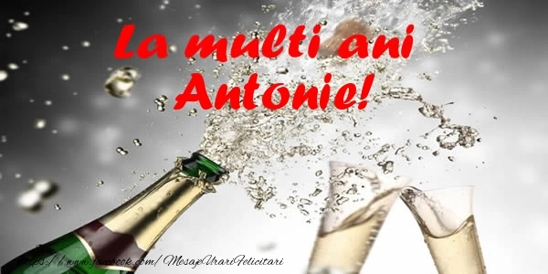 Felicitarea cu șampanie cu pahare și scris cu roșu este ca o explozie de bucurie și culoare, iar numele Antonie este adăugat cu gingășie pentru a personaliza această experiență de sărbătoare. Este modul tău de a spune la mulți ani într-un mod unic și special!