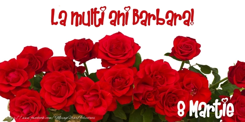 Oferiți mai mult decât un simplu cadou - oferiți o emoție personalizată de Ziua Femeii cu numele Barbara! Felicitarea de 8 Martie cu trandafiri pentru doamne și domnișoare este menită să încânte și să emoționeze, sărbătorind feminitatea în toată splendoarea sa.