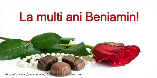 Această felicitare cu trandafir roșu și bomboane de ciocolată din colecția noastră de felicitari de la multi ani cu numele Beniamin are o notă de originalitate și îți oferă ocazia să faci o persoană să se simtă specială datorită faptului că acolo este numele ei. Felicitarea se poate descărca gratuit sau se poate trimite prin Whatsapp, Facebook, Twitter, Pinterest. Imagine de la mulți ani cu trandafir roșu și bomboane de ciocolată cu dimensiunile 600px x 300px și cu textul La multi ani Beniamin!.