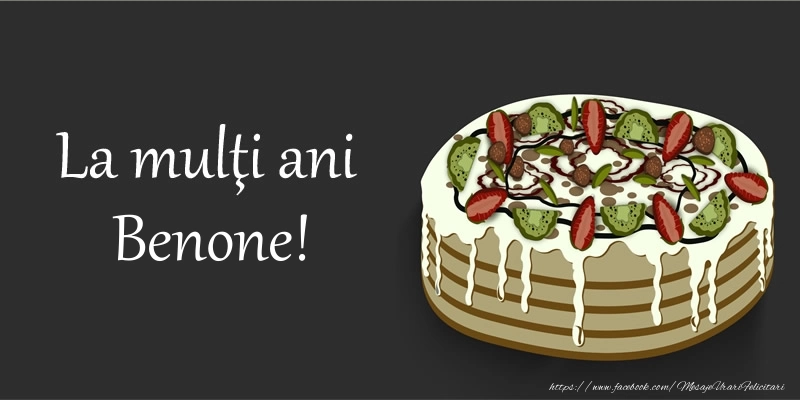 Cu un desen adorabil ce prezintă un tort de fructe proaspete și suculente, această felicitare cu numele Benone este o alegere perfectă pentru a sărbători ziua de naștere.