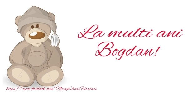 Felicitarea cu ursuleț simpatic este ca o explozie de bucurie și culoare, iar numele Bogdan este adăugat cu gingășie pentru a personaliza această experiență de sărbătoare. Este modul tău de a spune la mulți ani într-un mod unic și special!