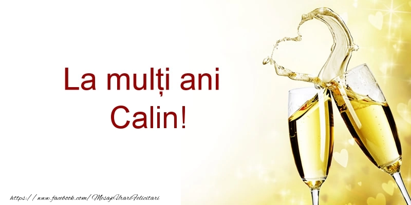Această felicitare cu pahare de șampanie cu inimioară din colecția noastră de felicitari de la multi ani cu numele Calin are o notă de originalitate și îți oferă ocazia să faci o persoană să se simtă specială datorită faptului că acolo este numele ei. Felicitarea se poate descărca gratuit sau se poate trimite prin Whatsapp, Facebook, Twitter, Pinterest. Imagine de la mulți ani cu pahare de șampanie cu inimioară cu dimensiunile 800px x 400px și cu textul La multi ani Calin!.