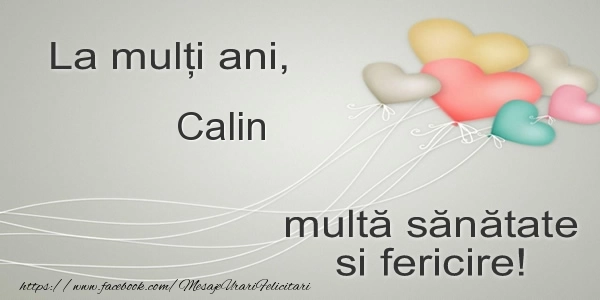 Felicitarea cu baloane inimioare este ca o explozie de bucurie și culoare, iar numele Calin este adăugat cu gingășie pentru a personaliza această experiență de sărbătoare. Este modul tău de a spune la mulți ani într-un mod unic și special!