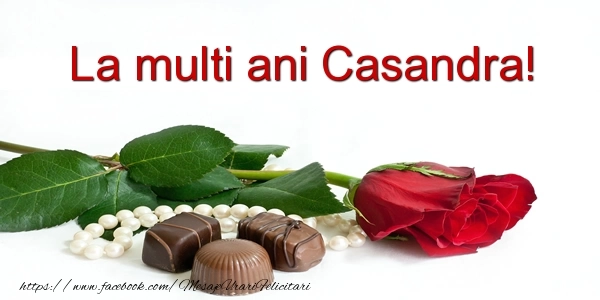 Această felicitare cu trandafir roșu și bomboane de ciocolată din colecția noastră de felicitari de la multi ani cu numele Casandra are o notă de originalitate și îți oferă ocazia să faci o persoană să se simtă specială datorită faptului că acolo este numele ei. Felicitarea se poate descărca gratuit sau se poate trimite prin Whatsapp, Facebook, Twitter, Pinterest. Imagine de la mulți ani cu trandafir roșu și bomboane de ciocolată cu dimensiunile 600px x 300px și cu textul La multi ani Casandra!.