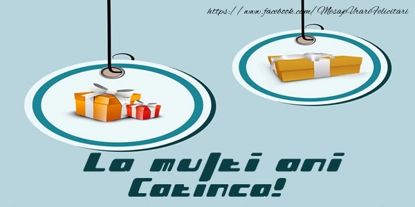 Felicitarea cu cadouri, cadouri este ca o explozie de bucurie și culoare, iar numele Catinca este adăugat cu gingășie pentru a personaliza această experiență de sărbătoare. Este modul tău de a spune la mulți ani într-un mod unic și special!