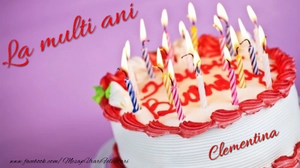Această felicitare cu tort cu glazură roșie cu lumânari colorate din colecția noastră de felicitari de la multi ani cu numele Clementina are o notă de originalitate și îți oferă ocazia să faci o persoană să se simtă specială datorită faptului că acolo este numele ei. Felicitarea se poate descărca gratuit sau se poate trimite prin Whatsapp, Facebook, Twitter, Pinterest. Imagine de la mulți ani cu tort cu glazură roșie cu lumânari colorate cu dimensiunile 600px x 337px și cu textul La multi ani, Clementina!.