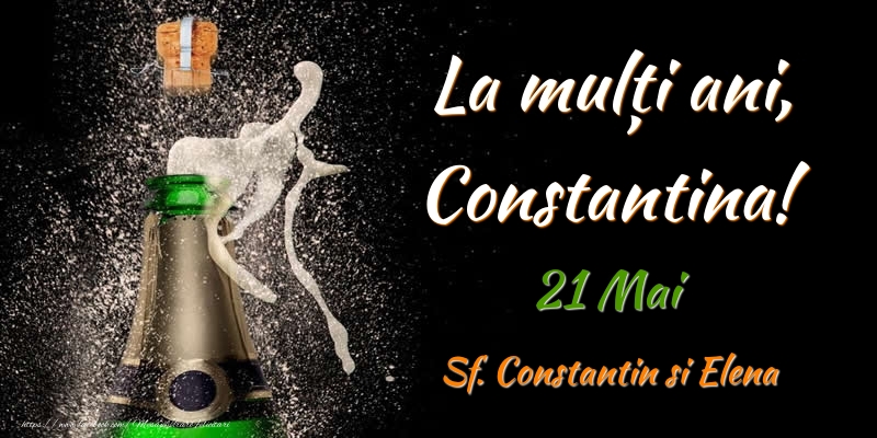 La multi ani, Constantina! 21 Mai Sf. Constantin si Elena | Felicitare cu sampanie pe fundal negru pentru bărbați sau femei | Felicitari de Ziua Numelui