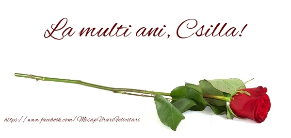 Această felicitare cu trandafir pentru femei din colecția noastră de felicitari de zi de nastere cu numele Csilla are o notă de originalitate și îți oferă ocazia să faci o persoană să se simtă specială datorită faptului că acolo este numele ei. Felicitarea se poate descărca gratuit sau se poate trimite prin Whatsapp, Facebook, Twitter, Pinterest. Imagine de zi de nastere cu trandafir pentru femei cu dimensiunile 600px x 284px și cu textul La multi ani, Csilla!.