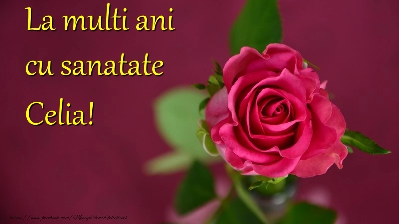 Felicitarea cu trandafir pentru fete este ca o explozie de bucurie și culoare, iar numele Celia este adăugat cu gingășie pentru a personaliza această experiență de sărbătoare. Este modul tău de a spune la mulți ani într-un mod unic și special!