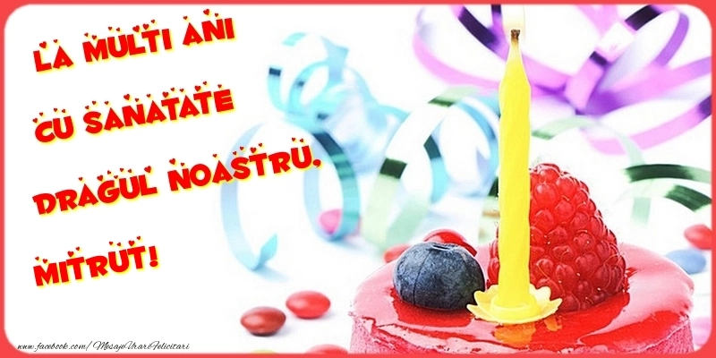 Felicitarea cu lumanare pe tort cu fructe este ca o explozie de bucurie și culoare, iar numele Mitrut este adăugat cu gingășie pentru a personaliza această experiență de sărbătoare. Este modul tău de a spune la mulți ani într-un mod unic și special!
