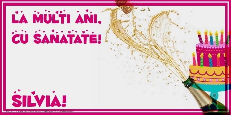 La multi ani, cu sanatate! Silvia | Felicitare cu șampanie și desen cu tort | Felicitari de zi de nastere