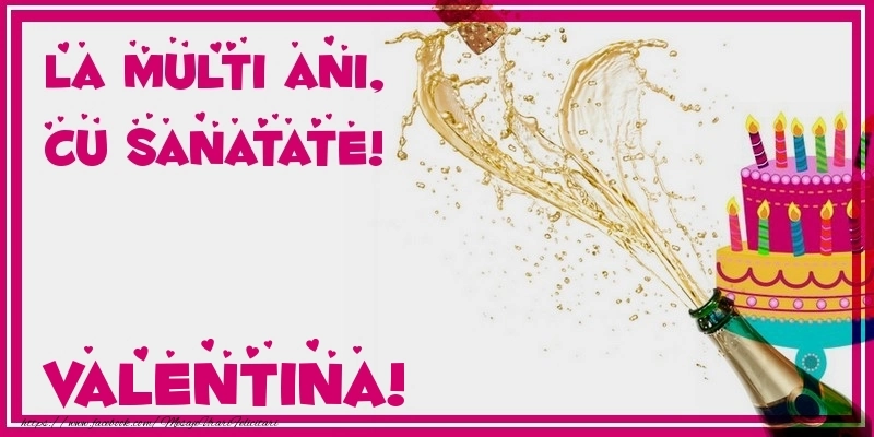 La multi ani, cu sanatate! Valentina | Felicitare cu șampanie și desen cu tort | Felicitari de zi de nastere