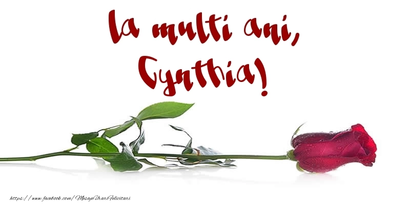 Felicitarea cu trandafir roșu cu text de culoare roșie este ca o explozie de bucurie și culoare, iar numele Cynthia este adăugat cu gingășie pentru a personaliza această experiență de sărbătoare. Este modul tău de a spune la mulți ani într-un mod unic și special!