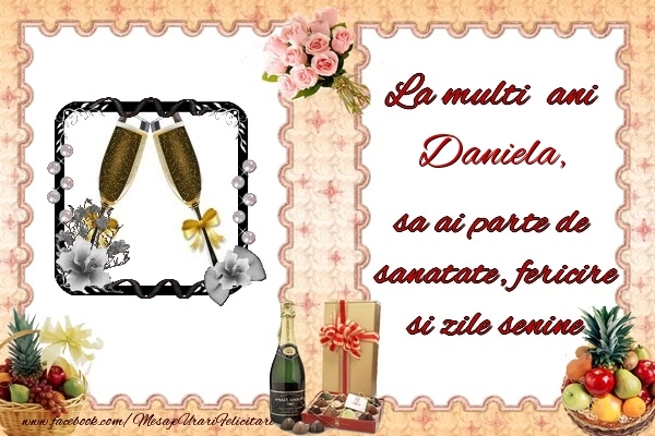 La multi ani Daniela, sa ai parte de sanatate, fericire si zile senine. | Felicitare cu buchete de flori, sampanie, tort și cadouri | Felicitari de zi de nastere
