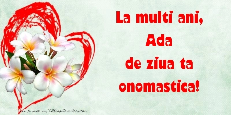 Ada, iti urez la multi ani, pentru ca porti acest nume si fie ca Sfantul pe care il reprezinti, sa-si coboare ochii asupra ta si sa iti daruiasca fericirea dorita si linistea interioara.