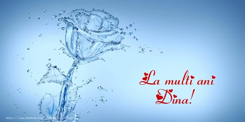 Felicitarea cu trandafir din picuri de apa pe fundal este ca o explozie de bucurie și culoare, iar numele Dina este adăugat cu gingășie pentru a personaliza această experiență de sărbătoare. Este modul tău de a spune la mulți ani într-un mod unic și special!