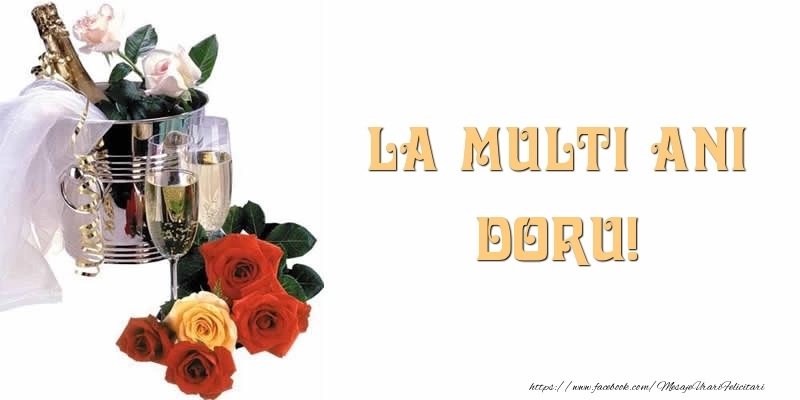 Felicitarea cu trandafiri și șampanie în frapieră pe fundal alb este ca o explozie de bucurie și culoare, iar numele Doru este adăugat cu gingășie pentru a personaliza această experiență de sărbătoare. Este modul tău de a spune la mulți ani într-un mod unic și special!