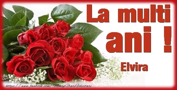Această felicitare cu trandafiri roșii pentru femei sau fete din colecția noastră de felicitari de zi de nastere cu numele Elvira are o notă de originalitate și îți oferă ocazia să faci o persoană să se simtă specială datorită faptului că acolo este numele ei. Felicitarea se poate descărca gratuit sau se poate trimite prin Whatsapp, Facebook, Twitter, Pinterest. Imagine de zi de nastere cu trandafiri roșii pentru femei sau fete cu dimensiunile 600px x 305px și cu textul La multi ani Elvira.