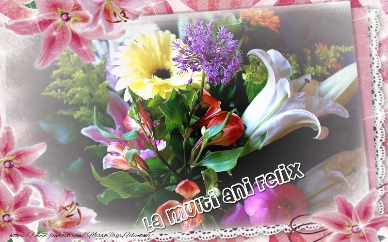 Fiecare floare este aleasă cu grijă și aranjată cu atenție pentru a crea un buchet fermecător și plin de viață. Culorile vibrante și parfumul îmbietor al florilor vor aduce un strop de prospețime și bucurie pentru Felix în această zi de sărbătoare. Acest aranjament cu flori este garantat să aducă un zâmbet pe fața destinatarului și să creeze amintiri de neuitat în ziua această zi specială! Felicitarea se poate descărca gratuit sau se poate trimite prin Whatsapp, Facebook, Twitter, Pinterest. Imaginea are dimensiunile 800px x 500px și textul La multi ani Felix.