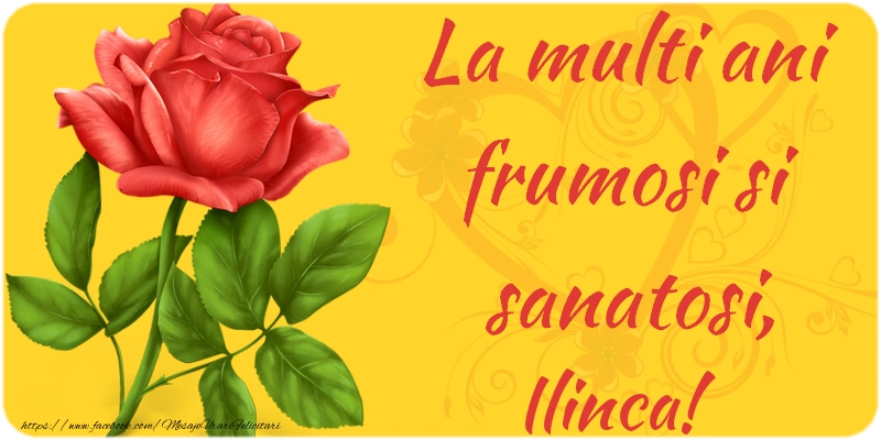 Felicitarea cu trandafir roșu pe fundal cu inimioară este un cadou mic, dar personal, creat special pentru ziua de naștere. Numele Ilinca e esența acestui cadou, aducând bucurie într-un mod simplu și intim.