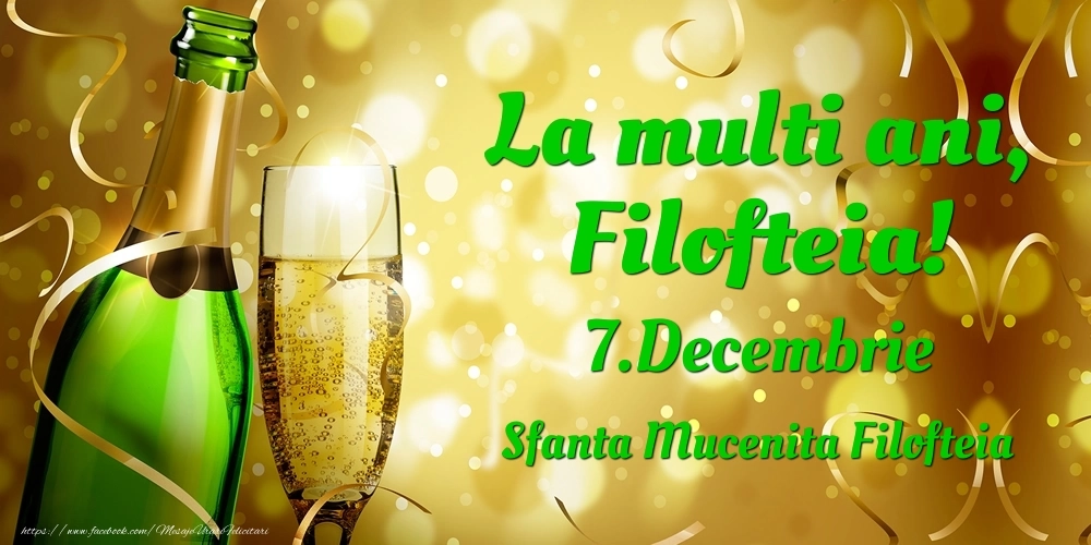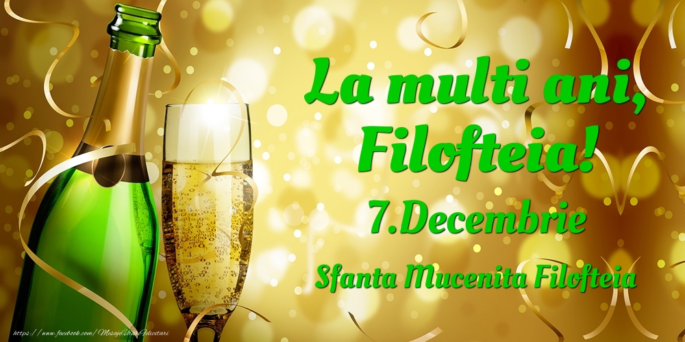 La multi ani, Filofteia! 7.Decembrie - Sfanta Mucenita Filofteia | Felicitare cu șampanie pentru sărbătoriți | Felicitari de Ziua Numelui