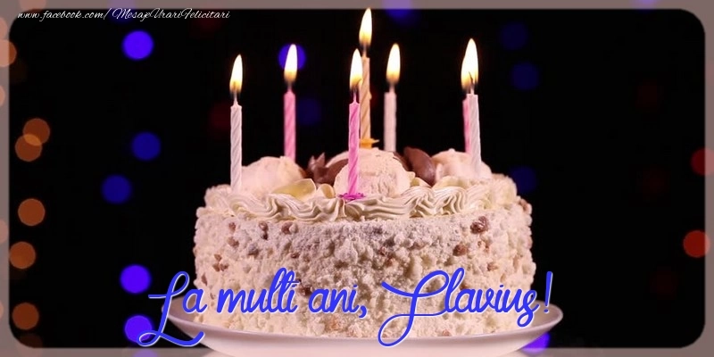 Această felicitare cu tort lux pentru femei sau bărbați din colecția noastră de felicitari de la multi ani cu numele Flavius are o notă de originalitate și îți oferă ocazia să faci o persoană să se simtă specială datorită faptului că acolo este numele ei. Felicitarea se poate descărca gratuit sau se poate trimite prin Whatsapp, Facebook, Twitter, Pinterest. Imagine de la mulți ani cu tort lux pentru femei sau bărbați cu dimensiunile 800px x 400px și cu textul La multi ani, Flavius!.